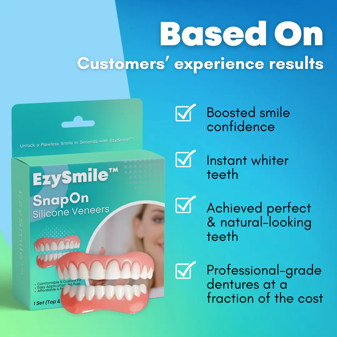 At EzySmile™, we are committed to enhancing lives through our advanced dental solutions, designed to improve both your comfort and emotional well-being. Experience the freedom and confidence that countless others have found with EzySmile™ SnapOn Silicone Veneers. Join our community and discover just how simple it can be to enjoy a radiant smile every day!