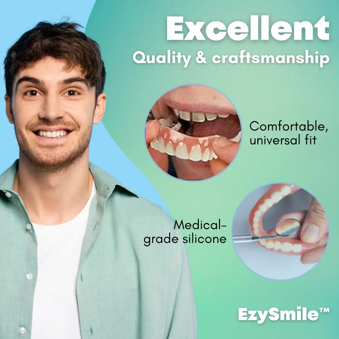 🌟 Reliable Quality and Safety: Trust EzySmile™ for your dental needs. Our premium, non-toxic silicone is rigorously tested for safety and durability. This material provides a long-lasting, comfortable fit, letting you enjoy your dentures worry-free. Rest easy knowing you’re investing in a product that prioritizes your health.