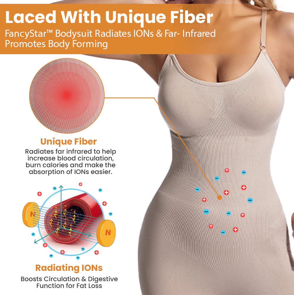 It’s worth noting that the FANCYSTAR™ Sodium IonFiber Restoration Shaping Bodysuit embeds micro-electric stone fibers via a special process that stimulate over 800 reflex points in the chest, abdomen, and hip areas. These electric stone fibers produce infrared energy without requiring additional power sources, such as electricity.