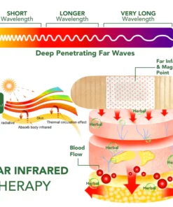 Far infrared is a segment of electromagnetic radiation that can penetrate deep into the body, reaching tissues such as muscles, tendons, nerves, blood vessels, and ligaments after passing through 16 millimeters of subcutaneous tissue. Once it reaches these tissues, it can aid in repairing damaged cells, expanding microvessels, enhancing blood circulation, activating enzymes, and accelerating the metabolism of blood and cell tissues. This is achieved by raising body temperature and promoting physical activity, even during periods of rest. Furthermore, it enhances blood flow, circulation, and the body’s synthesis of hormones and enzymes, all of which play an important role in promoting fat burning and weight loss. Through far infrared rays herbs can be released to penetrate into the underlying skin layers.