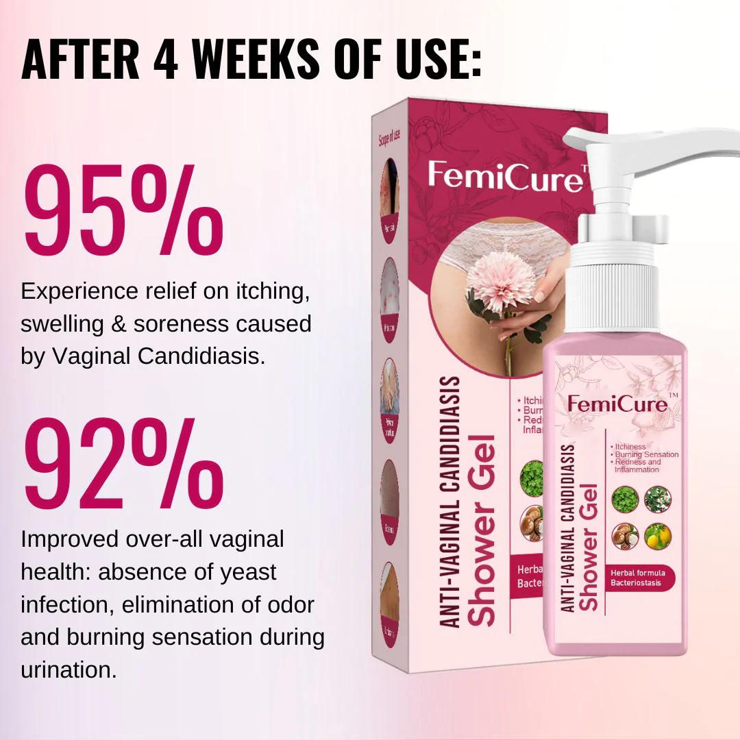 FemiCure™ Anti-Vaginal Candidiasis Shower Gel provides instant, long-lasting relief from even the most painful, burning itch and irritation on contact caused by Vaginal Candidiasis.