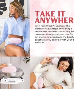 - Convenient and travel-friendly: FemiWELL™ is designed for your convenience and portability. Its compact size lets you wear it discreetly under your clothing to experience relief anytime, anywhere. Whether at work, running errands, or traveling, FemiWELL™ provides the freedom to address menstrual discomfort.