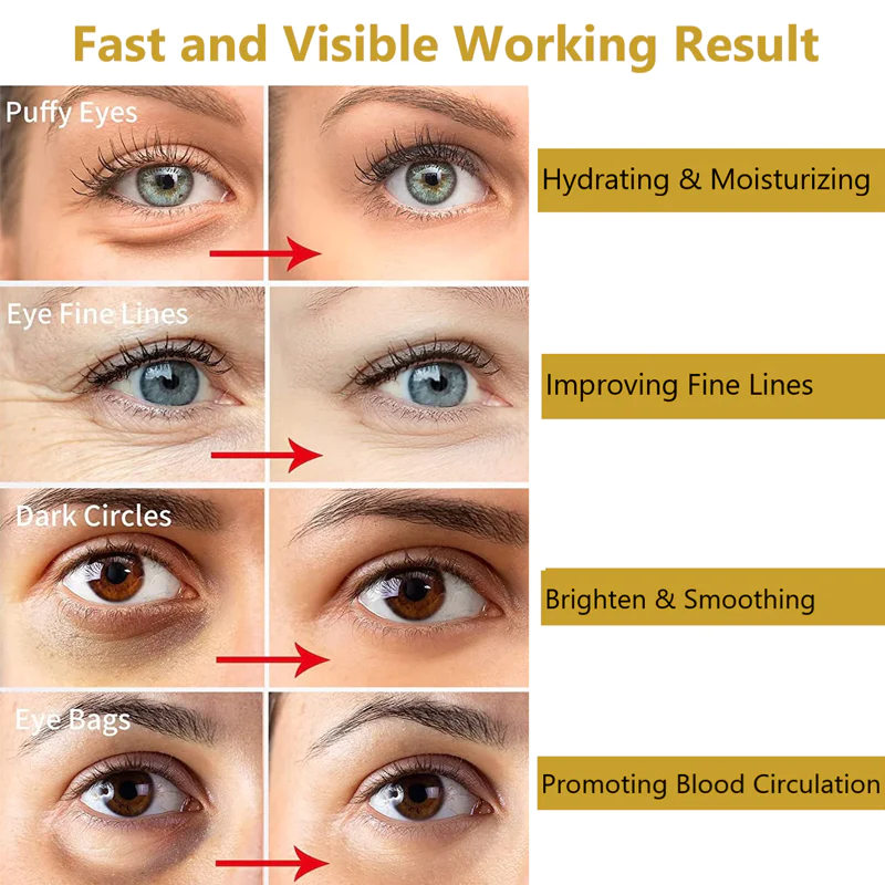 „Mir wurde dieses Produkt empfohlen, das mich wirklich überrascht hat, als ich die Kappe öffnete, mit einem leicht guten Geruch, und die Augenmaske enthält goldene Partikel, sieht sehr schick aus. Ich stelle die Augenmasken zuerst in den Kühlschrank und trage sie dann auf das Gesicht auf. Es ist ein Sehr entspannende Routine, ich kann sie jeden Tag anwenden und sehe eine anhaltende Wirkung! Nach einem Monat der Anwendung sind meine Tränensäcke verschwunden! Und ich werde auch morgens nicht mehr geschwollen sein, wenn ich sie gestern Abend aufgetragen habe. Deshalb verwende ich sie immer noch weitere Ergebnisse erzielen.“ –45,Wanda Holloman,Phoenix,AZ
