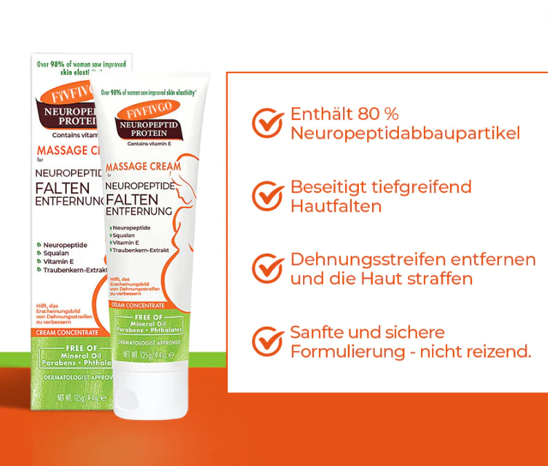 “Nach der Geburt fühlte ich mich extrem unzufrieden und unsicher wegen der Dehnungsstreifen an meinem Bauch, und mein Mann begann, mich abzulehnen. Nachdem ich jedoch Fivfivgo™ Ageless NeuroPeptide Faltenreduzierende Creme 20 Tage lang verwendet hatte, konnte ich erstaunliche Veränderungen feststellen! Meine Dehnungsstreifen verblassten, und die schlaffe Haut an meinem Bauch wurde merklich straffer. Jetzt kann ich meinen Körper selbstbewusst zur Schau stellen, und mein Mann sagt mir, dass ich noch schöner aussehe als zuvor. Das war eine meiner besten Anschaffungen, und ich werde es auf jeden Fall wieder kaufen!”