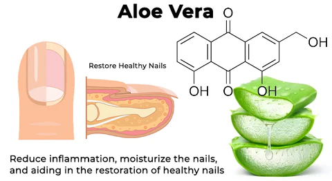 Aloe Vera ist aufgrund seiner beruhigenden und heilenden Eigenschaften ein bekannter Inhaltsstoff in der Hautpflege. In Fivfivgo™ ist Aloe Vera enthalten, um geschädigte Nägel und Haut, die von Pilzinfektionen betroffen sind, zu lindern.