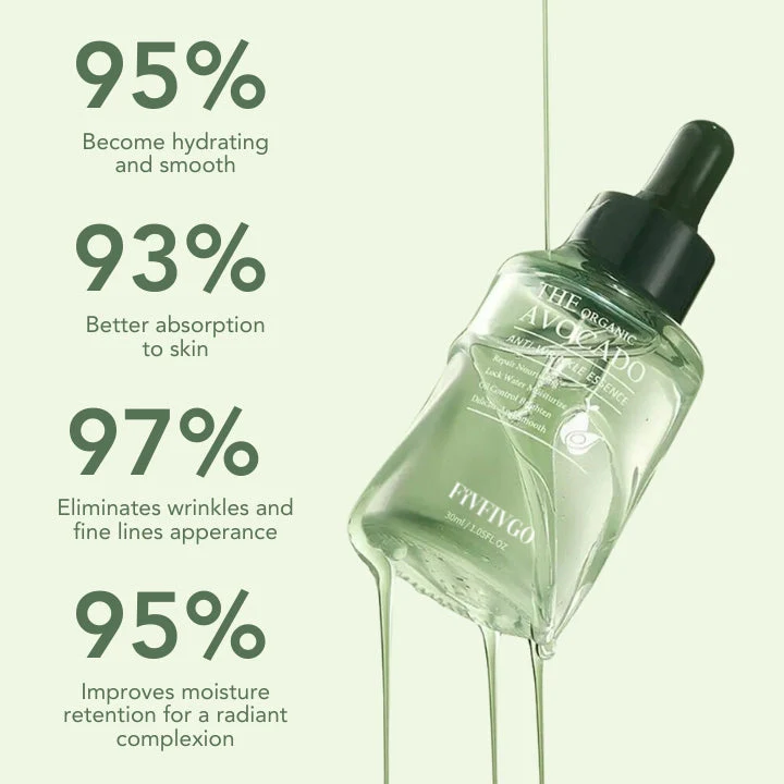 Entscheiden Sie sich für die Fivfivgo™ Avocado-Anti-Falten-Essenz, denn sie enthält eine hochwirksame Mischung aus Bio-Avocado, die gezielte Anti-Aging-Effekte mit intensiver Feuchtigkeitszufuhr und einem nicht-invasiven Ansatz bietet und Ihre Haut nährt, revitalisiert und sichtbar glättet. Verbessern Sie Ihre Hautpflegeroutine mit der Kraft natürlicher Antioxidantien und essentieller Fettsäuren für einen jugendlichen und strahlenden Teint.