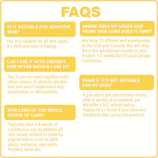 6. Dunkle Flecken und Sommersprossen aufhellen : Fivfivgo™ ist reich an Vitamin C und Antioxidantien, die die Regeneration der Hautzellen und den Pigmentstoffwechsel fördern und so das Problem von dunklen Flecken und Sommersprossen aufhellen.