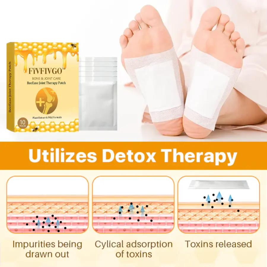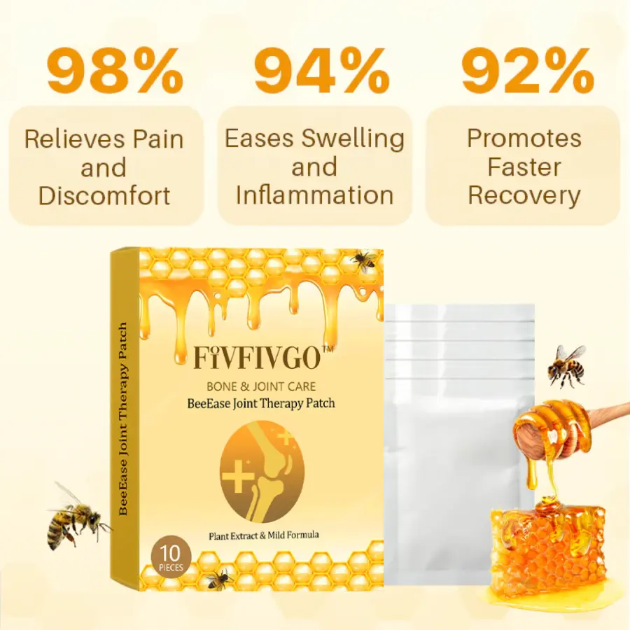 Das Fivfivgo™ BeeEase Gelenk-Therapie-Pflaster verwendet transdermale Technologie, um Bienengift und weitere Wirkstoffe direkt in den Blutkreislauf zu transportieren. Dadurch wird die Bioverfügbarkeit gesteigert und das Gelenkgewebe gezielt adressiert. Es wirkt entgiftend, indem es Giftstoffe ausscheidet, reduziert den oxidativen Stress und schützt den Knorpel. Das Bienengift ist reich an Melittin, welches entzündungshemmend und schmerzlindernd wirkt, die Durchblutung verbessert und die Reparatur der Gelenke fördert – besonders vorteilhaft bei Erkrankungen wie Arthritis. Dieses Pflaster bietet eine nicht-invasive, lang anhaltende Schmerzlinderung und eine verbesserte Mobilität.