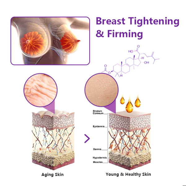 Glycerin ist ein feuchtigkeitsspendender Wirkstoff, der dabei hilft, die Feuchtigkeit und Elastizität der Haut zu erhalten. Wenn es den Brüsten an ausreichender Feuchtigkeit und ausreichender Unterstützung durch Kollagen mangelt, kann es zu Erschlaffung und Schlaffheit kommen. Glycerin spendet zusätzliche Feuchtigkeit und hält die Brüste hydratisiert und fest.