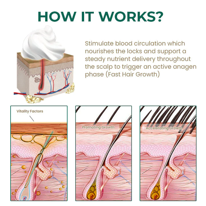This Fivfivgo™ Glamor Ginger Essential Hair Growth Cream is formulated from natural extracts that are proven safe and gentle on your hair and scalp. It provides an adequate amount of nourishment that gets deeply into your scalp; it prevents scalp aging, stops hair loss, and boosts the hair regrowth cycle; it also improves the overall condition of your hair effectively; and it is absolutely low-cost and non-invasive. 10x faster absorption compared to other hair growth products.