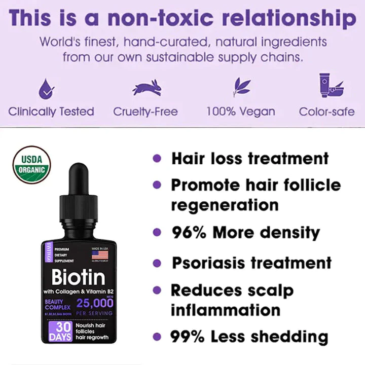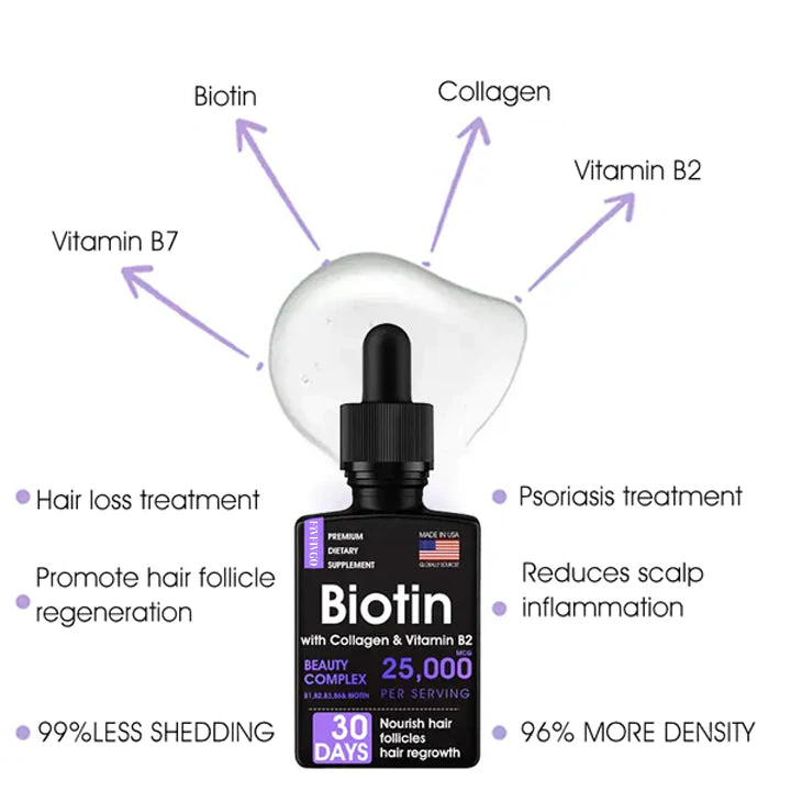 - Biotin: Biotin ist eine Art von Vitamin B, das das Haarwachstum und die Gesundheit fördert, den Zustand der Kopfhaut verbessert und Probleme wie Haarbruch, Schuppen und Juckreiz verringert.