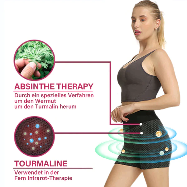 In Absinth getränkte und durch ein spezielles Verfahren um Turmalin befestigte Shorts können Thujon und negative Ionen freisetzen. Die Ferninfrarottherapie in Kombination mit der Absinththerapie kann dazu beitragen, Schmerzen in verschiedenen Körperteilen zu lindern, die Muskeln an verschiedenen Stellen zu entspannen und Entzündungen zu verringern. Bei langfristiger Anwendung können Gesundheitsprobleme wie Entzündungen, Cellulite, Lymphödeme, Ödeme der unteren Gliedmaßen und gynäkologische Erkrankungen verhindert und behandelt werden. Sie kann sogar Gebärmutterhalskrebs vorbeugen.