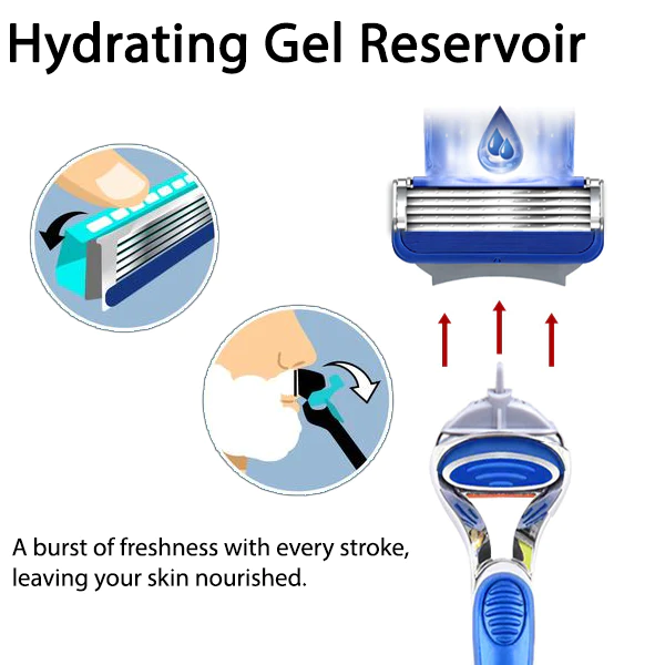 Hydrating Gel Reservoir: Pflegt die Haut während und nach jeder Rasur.