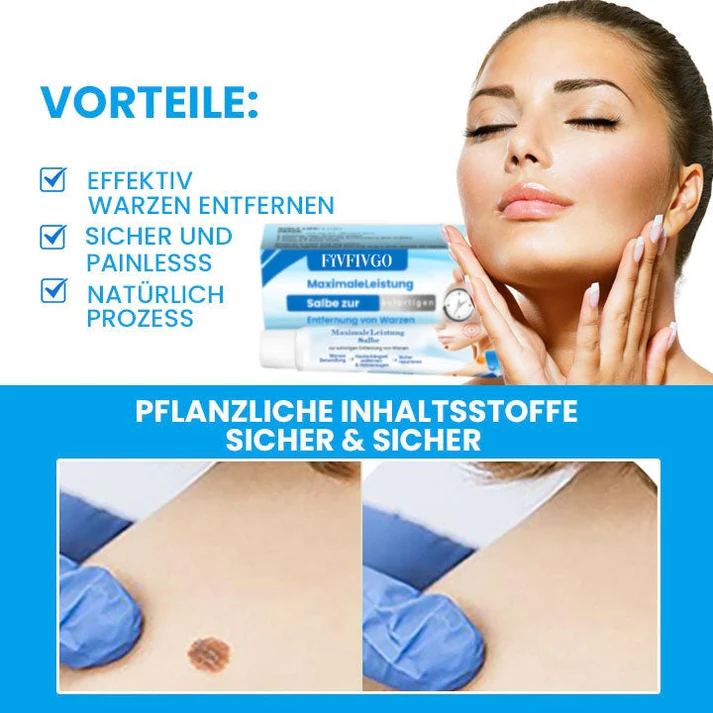 Wussten Sie, dass 60 % aller Menschen irgendwann in ihrem Leben einen Hautausschlag oder ein Muttermal bekommen? Wenn Sie auf der Suche nach einer Creme zur Warzenentfernung sind, die Warzen und andere Hautunreinheiten im Gesicht und an anderen Körperstellen wirksam entfernen kann, ohne Narben zu hinterlassen oder die gesunde Haut zu schädigen, dann ist diese leistungsstarke Fivfivgo™ Hochleistungssalbe zur sofortigen Entfernung von Warzen genau das Richtige für Sie.