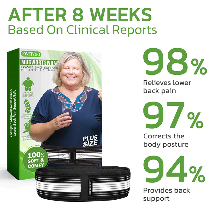 Der Fivfivgo™ Mugwortswrap Health Stützgürtel für Schmerzen im unteren Rücken ist auf breitere Taillen zugeschnitten und auf Ihren Komfort ausgelegt. Dieser spezielle Gürtel passt sich nicht nur Ihrer breiteren Taille an, sondern lindert auch auf natürliche Weise Schmerzen in der Hüfte und im unteren Rückenbereich. Dieser Gürtel bietet eine einzigartige Mischung aus Unterstützung und Komfort und ermöglicht Ihnen freie Bewegung, was zu einem aktiveren und schmerzfreien Lebensstil führt. Verabschieden Sie sich von Beschwerden und genießen Sie die Vorteile dieser sorgfältig entwickelten Lösung, die auf natürliche Weise passt und lindert.