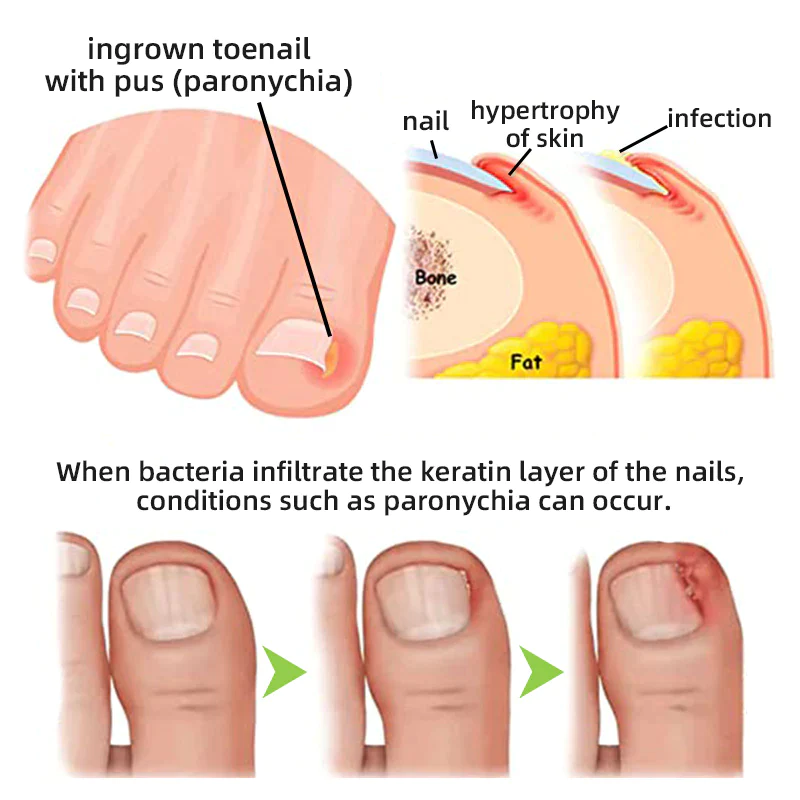 Die Blaulichttherapie ist eine medizinische Technik, die eine bestimmte Wellenlänge von 470 nm blauem Licht zur Nagelbehandlung nutzt. Es kann die äußere Schicht des Nagels durchdringen und eine photodynamische Reaktion im Keratin des Nagels auslösen. Diese Reaktion führt zur Bildung schädlicher freier Sauerstoffradikale, die Bakterien und Pilze in der Nähe des Nagels effektiv angreifen und zerstören können, wodurch entzündungsbedingte Infektionen reduziert und Symptome wie Rötung, Wärme und Schmerzen an der Entzündungsstelle gelindert werden. Wichtig ist, dass es die grundlegende Reparatur von Schäden erleichtern kann, ohne dass es zu Nebenwirkungen oder Arzneimittelresistenzen kommt.
