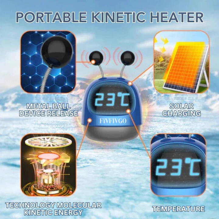 The Fivfivgo™ Miniature Portable Solar Heater uses a metal ball release mechanism designed by NASA. When activated, the metal ball release mechanism induces molecular rotational motion. Molecular movement releases kinetic energy, which not only prevents water molecules from freezing but also performs the fundamental task of heating the environment.