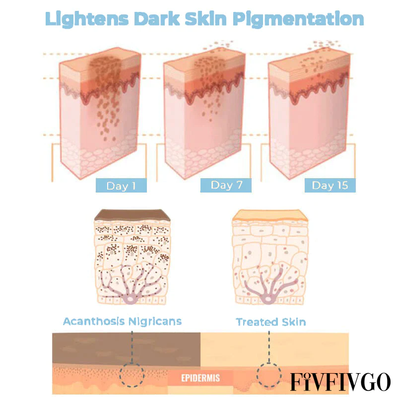 Durch die beschleunigte Entfernung von Insulin aus dem Blut behandelt Fivfivgo™ Collagen Boost Acanthosis Nigricans Therapy Cream effizient die Hauptursache für erhöhtes Melanin, das zu einer tieferen Hautpigmentierung führt. Die Creme beschleunigt die Freisetzung von gespeicherter Glukose, was helfen kann, Insulin schnell aus dem Blutkreislauf zu entfernen.