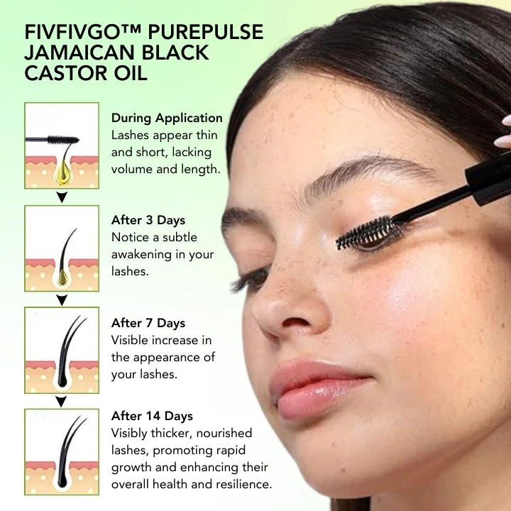 Rapid Eyelash Growth Promotion: Fivfivgo™ PurePulse Jamaican Black Castor Oil contains a potent blend of ingredients, including Jamaican Black Castor Oil and biotin, which work together to stimulate the growth of eyelashes. The nourishing properties of these ingredients penetrate deep into the hair follicles, promoting faster and thicker lash growth over time.