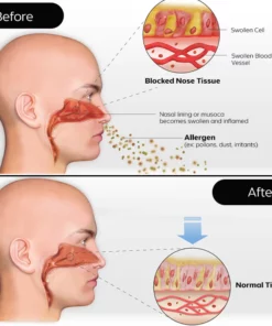 Eine verstopfte oder verstopfte Nase tritt auf, wenn die sie auskleidenden Gewebe anschwellen. Die Schwellung ist auf entzündete Blutgefäße zurückzuführen. Das Problem kann auch eine Nasensekretion oder “laufende Nase” umfassen. Wenn überschüssiger Schleim in den Rachen läuft (postnasales Tropfen), kann dies zu einem Husten oder Halsschmerzen führen.
