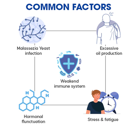 🔹Übermäßige Ölproduktion: Überaktive Talgdrüsen können zu einer Ansammlung von Ölen führen, was zur Entwicklung von seborrhoischer Dermatitis beiträgt.