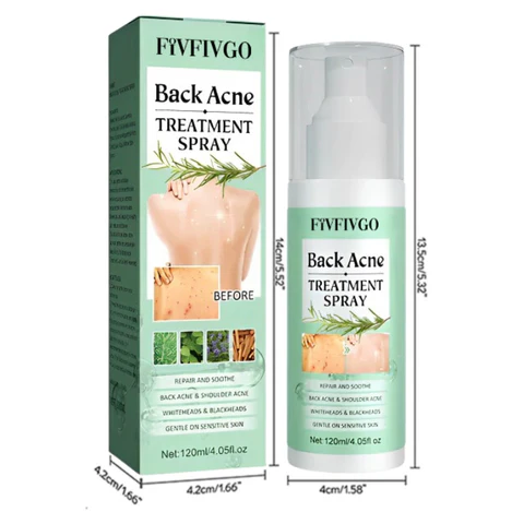 Rückenakne, auch bekannt als “Bacne”, ist eine häufige Hauterkrankung, die durch Akneläsionen auf dem Rücken gekennzeichnet ist. Ähnlich wie Akne im Gesicht entsteht Akne am Rücken, wenn die Haarfollikel am Rücken mit Öl, abgestorbenen Hautzellen und Bakterien verstopft werden. Zu den Faktoren, die zu Akne am Rücken beitragen, gehören hormonelle Schwankungen, übermäßige Ölproduktion, Schwitzen, Reibung durch Kleidung und bestimmte Haut- oder Haarpflegeprodukte. Akne am Rücken kann sich in Form von Pickeln, Mitessern, Mitessern oder schwereren entzündlichen Läsionen äußern. Sie kann unangenehm sein, jucken und Narben oder dunkle Flecken hinterlassen. Richtige Hygiene, regelmäßiges Peeling, das Tragen atmungsaktiver Kleidung und die Verwendung von Produkten zur Aknebekämpfung wie Fivfivgo™ Spray zur Behandlung von Akne am Rücken helfen, Akne am Rücken zu behandeln und zu verhindern.