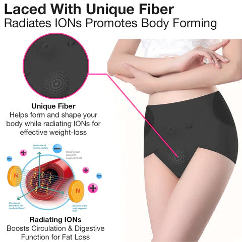 Mit Hilfe der von der Unique Fiber abgestrahlten IONs und der nahtlosen One-Piece-Compression -Körperformungsfunktionen unseres Shapers können Sie Gewicht verlieren, Fett verbrennen und Ihre Hüften formen. Und das ist möglich aufgrund der Konzentration von IONs um Ihre Taille , die auf das Bauchfett abzielen, und der formenden Eigenschaften der Kompressionspassform unserer Slips.