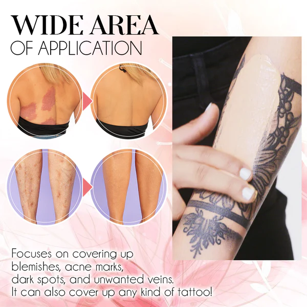 ✅ Full body coverage: Cover up imperfections anywhere on your body with our wide application- legs, arms, back of hands, and more.
