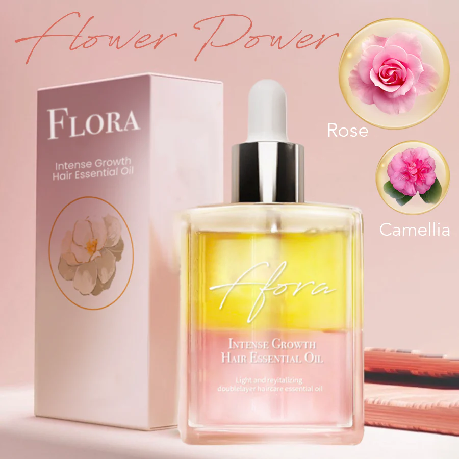 The American Academy of Dermatologists states that it is not normal to lose more than 100+ strands of hair per day. Various factors such as nutrient deficiencies, illnesses, medications, reactions to hair products, stress, or pregnancy can lead to abnormal or temporary hair loss. Flora Intense Growth Hair Essential Oil promises to help restore your hair to its natural beauty with a deep cleansing and nourishing treatment in one bottle. Use it and you‘ll see your hair come back to life in no time!