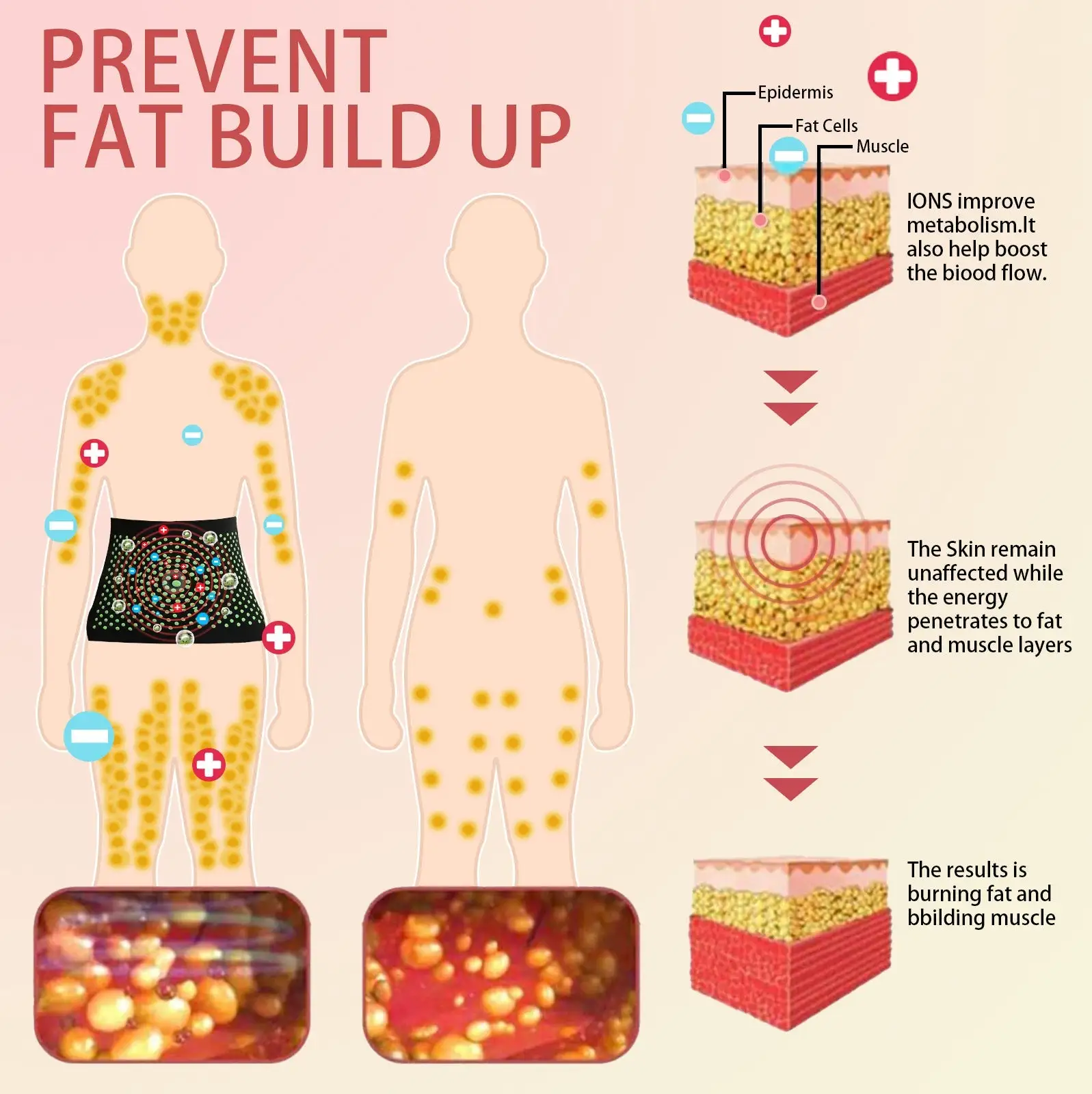 The waist belt is lined with micro-vibration massage fabric, utilizing low-frequency vibration technology. By leveraging subtle body movements, these vibrations are transmitted to the vibration amplification module, causing the entire fabric to resonate at specific frequencies. This targets particular muscle groups for vibration stimulation, mimicking the effect of a hand massage. The vibrations help break down fat cell clusters, activate deep fat metabolism, and promote lymphatic detoxification.