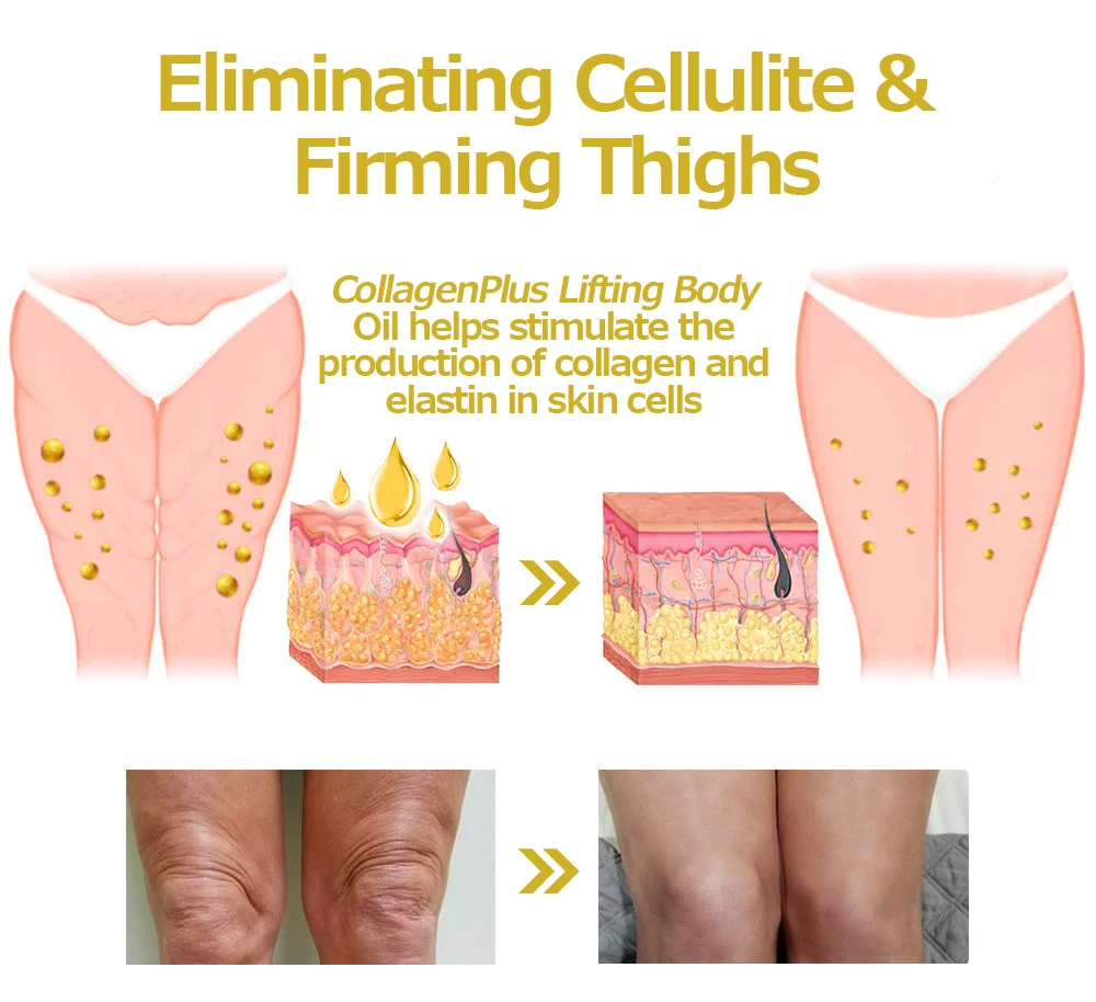 Factors like sudden weight fluctuations, excessive alcohol consumption, late nights, a sedentary lifestyle, and lack of exercise can lead to the formation of cellulite, as can an increase in female hormones. flysmus™ Advanced Firming Collagen Lifting Body Oil helps reduce the appearance of cellulite by accelerating skin cell regeneration, regulating estrogen levels, and enhancing natural collagen production, while also improving skin elasticity. By using flysmus™ Advanced Firming Collagen Lifting Body Oil, you can enjoy the benefits of pure natural oil while firming and tightening your buttocks.