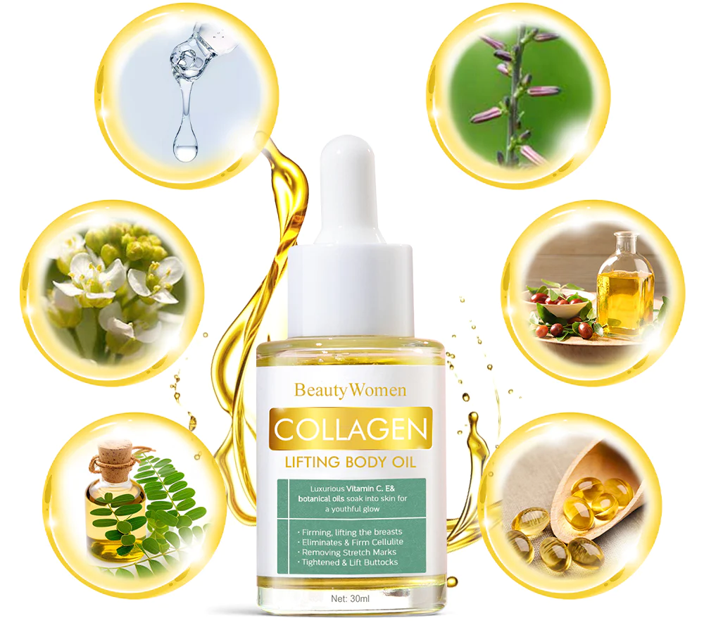 The reason behind creating flysmus™ BeautyWomen Collagen Lifting Body Oil is the loss of collagen and hormonal imbalance, which are responsible for skin issues such as wrinkles, aging, sagging, and fat accumulation. With the use of this product, you can eliminate stretch marks, wrinkles, and sagging skin, as well as improve the appearance of your abs, breasts, and buttocks. Additionally, it can help tighten loose skin and provide other benefits. flysmus™ BeautyWomen Collagen Lifting Body Oil is made from 100% natural ingredients, ensuring that it is safe for your skin while providing you with a quality product.