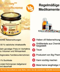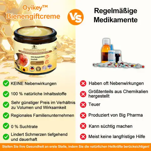 “Nach Jahren des Kampfes mit Knieschmerzen und starker Schwellung waren meine Knie so entzündet, dass meine Freunde scherzten, sie sähen aus wie Fußbälle. Als ich auf die Bienengift-Schmerzlindernde Knochengheilungscreme stieß, entschied ich mich, sie ohne zu zögern auszuprobieren. Zu meiner Überraschung bemerkte ich in weniger als drei Wochen unglaubliche Verbesserungen: Die Knieschmerzen ließen erheblich nach und die Schwellung verschwand. Ich bin jetzt vollständig geheilt und unglaublich dankbar für diese Creme. Sie hat einen riesigen Unterschied in meinem Leben gemacht.”–Lukas Schneider, Hamburg, Deutschland.