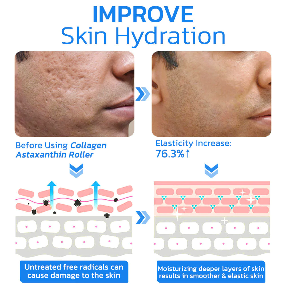 The flysmus™ BoLiftox PockmarksTreat Collagen Astaxanthin Roller is a prime illustration of a hassle-free and effective skincare solution. By utilizing microdart technology, this groundbreaking roller efficiently transports collagen and astaxanthin deep into the skin. Its straightforward yet ingenious construction makes it user-friendly and can be effortlessly integrated into any skincare regimen. With its effective delivery system, active components are efficiently absorbed, making it an ideal solution for individuals seeking to enhance the health and appearance of their skin.