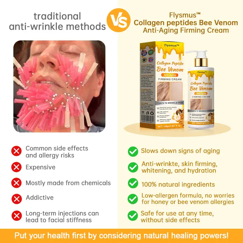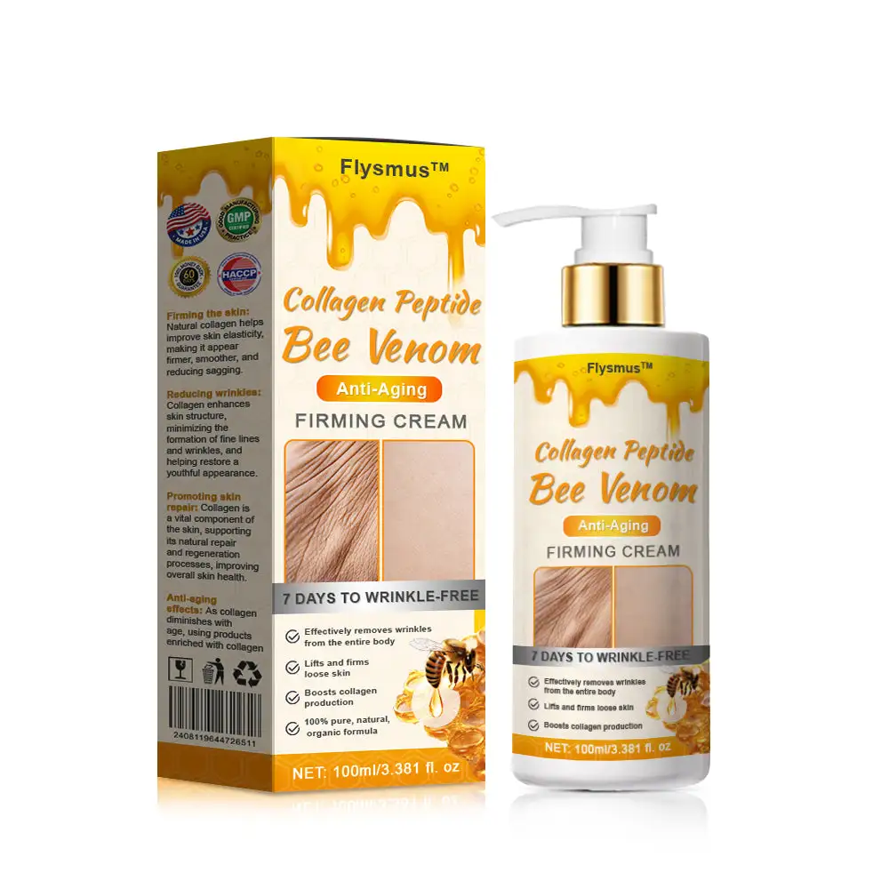 Experience the unique benefits of 𝐅𝐥𝐲𝐬𝐦𝐮𝐬™ 𝐂𝐨𝐥𝐥𝐚𝐠𝐞𝐧 𝐏𝐞𝐩𝐭𝐢𝐝𝐞 𝐁𝐞𝐞 𝐕𝐞𝐧𝐨𝐦 𝐀𝐧𝐭𝐢-𝐀𝐠𝐢𝐧𝐠 𝐅𝐢𝐫𝐦𝐢𝐧𝐠 𝐂𝐫𝐞𝐚𝐦! Enriched with collagen, it effectively promotes skin cell regeneration, enhances elasticity, and stimulates blood circulation. Additionally, the inclusion of shea butter and hyaluronic acid gives the cream a lightweight texture that absorbs easily, deeply hydrating the skin and replenishing essential nutrients, making your skin look younger and firmer.