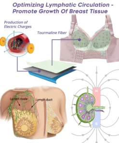 Pyrrhotite is a magnetite that exhibits magnetic properties. Our EleganzaCurve Tourmaline Fiber Recontour Bra is designed with the unique utilization of pyrrhotite to promote a healthy lymphatic system by removing waste products and toxins from tissues. With improved circulation and nutrient delivery, the lymphatic system can transport lymph fluid and deliver nutrients to cells. As a result, optimizing lymphatic circulation can improve the health and potential growth of the breast tissue.