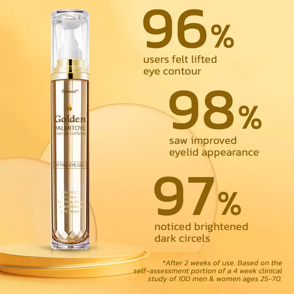 The flysmus™ Golden Palmitoyl Peptide Caffeine Lifting Eye Gel offers a highly beneficial remedy for mature skin. It provides a multitude of advantages, such as promoting the production of collagen and enhancing the regeneration of skin cells. These benefits collaborate to firm the skin and reduce the visibility of signs of aging like age spots, dark circles caused by blood vessels, and drooping eyelids. The skin undergoes a rejuvenating change, emitting a radiant glow and a renewed, more youthful charm.