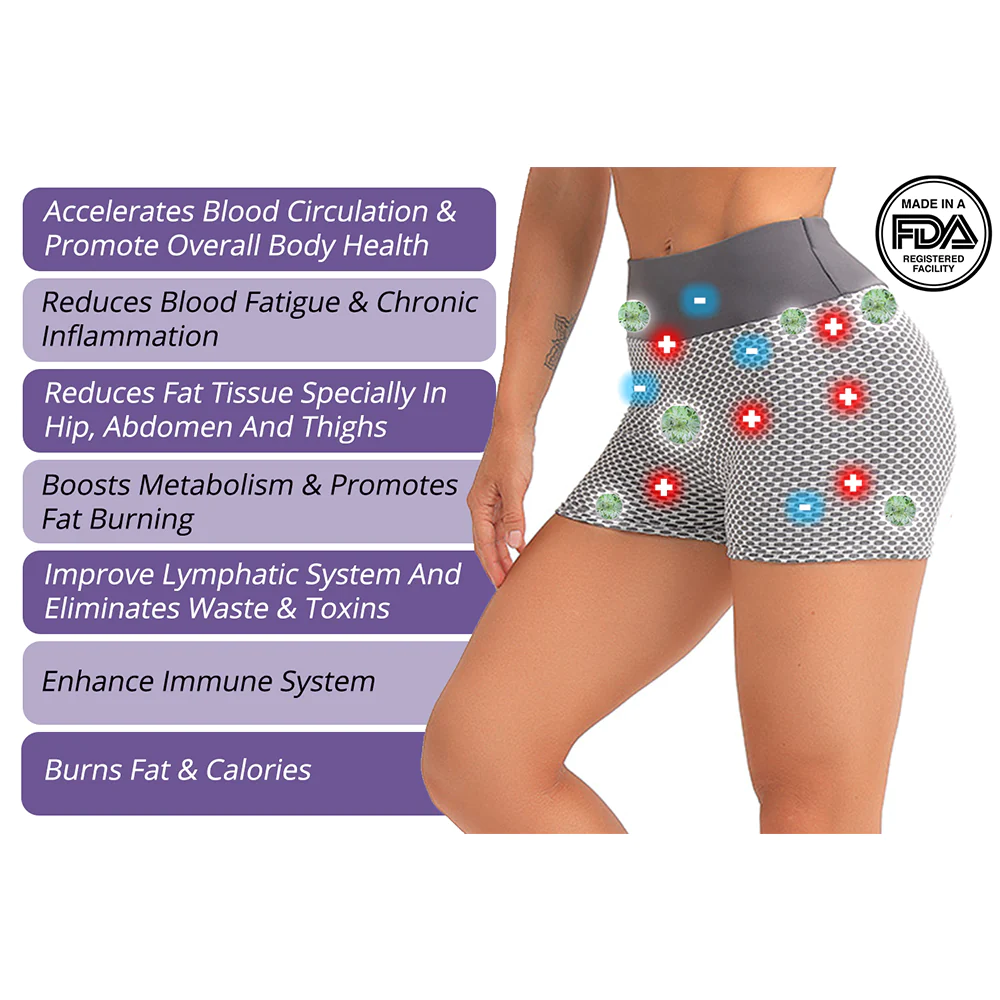 flysmus™ ION Breathable Tourmaline Shorts massage and release ions that promote collagen boosting, causing loose skin and excess fat to disappear from the buttocks, allowing sagging, deformed buttocks to be tightened and lifted!