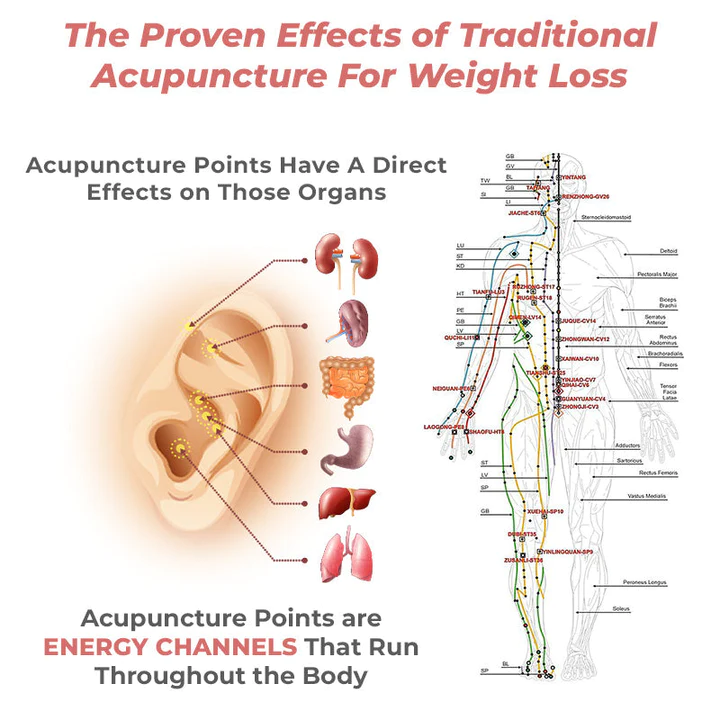 Acupuncture points are believed to stimulate the body’s organs and systems by influencing the flow of qi, or vital energy, throughout the body. Qi flows through meridians, which are energy channels that run throughout the body and are connected to the body’s organs and systems. This stimulation can activate the body’s natural healing processes and help restore balance to the body’s systems. With the stimulation of the specific acupuncture point, it is able to improve digestion, which could lead to improved metabolic function and weight loss.