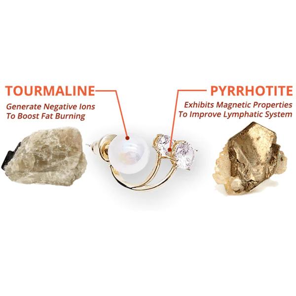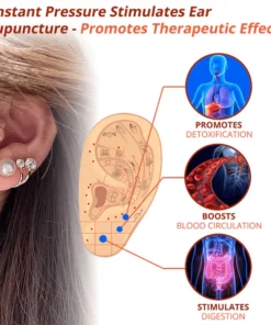 Die Ohrakupunktur kann durch unsere Ohrringe stimuliert werden. Sobald sich die Ohrringe in den 3 Ohrakupunkturpunkten befinden, üben sie dort einen sanften und konstanten Druck aus. Dieser Druck trägt dazu bei, die Punkte zu stimulieren und die gewünschte therapeutische Wirkung zu erzielen. Eine solche Stimulation kann den Energiefluss im Körper regulieren, das Gleichgewicht fördern und verschiedene Gesundheitszustände behandeln. Außerdem kann sie bei der Gewichtsabnahme helfen, indem sie den Stoffwechsel anregt, die Verdauung optimiert, Wassereinlagerungen reduziert und andere mit der Gewichtsabnahme verbundene Körperfunktionen optimiert.