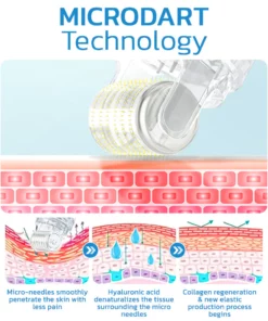 Microdart technology can help your skin in several ways. When micro-needles penetrate the skin, they create tiny channels or microchannels that can allow skincare products or active ingredients to penetrate deeper into the skin. This enhances the effectiveness of the products, making them more efficient in addressing skin concerns. It can also stimulate collagen production, which can help to improve the skin’s elasticity, reduce fine lines and wrinkles, and improve overall skin texture.