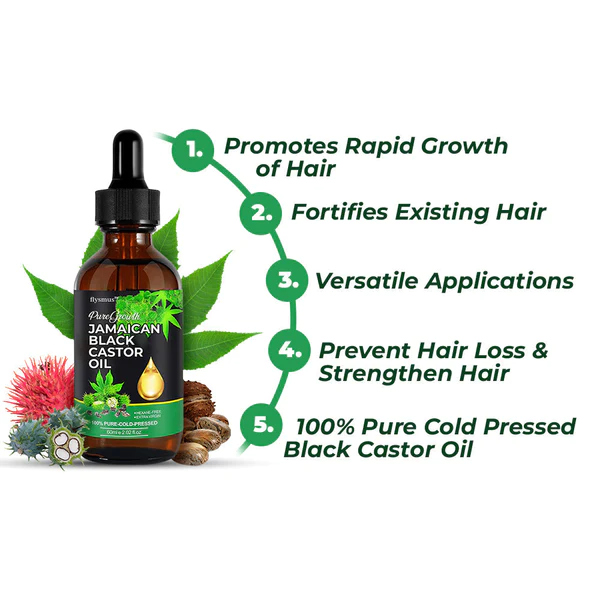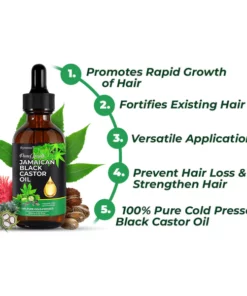 flysmus™ PureGrowth Jamaican Black Castor Oil makes use of the powerful and popular natural remedy, Jamaican Black Castor Oil. The oil is 100% pure and natural, cold-pressed and unrefined, and rich with vitamins and fatty acids. This versatile oil has been used for generations to address various hair concerns, such as promoting hair growth, boosting scalp health, and stimulating dormant hair follicles. Its effectiveness and versatility have made it a trusted staple in hair care and beauty routines worldwide.