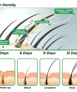 Biotin is the other powerful ingredient in our exquisite formula of black castor oil. It has been proven that it improves the keratin infrastructure of the hair, making it stronger and less prone to breakage. This can lead to the appearance of thicker, healthier hair. Moreover, biotin can fasten hair growth, particularly in cases of hair loss or thinning.