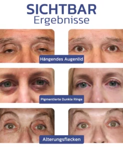 Gefäßbedingte Augenringe und schlaffe Augenlider sind häufige Probleme, die eng mit dem natürlichen Alterungsprozess zusammenhängen. Diese Probleme sind auf eine Kombination von Faktoren zurückzuführen, vor allem auf den allmählichen Verlust der Hautelastizität und die verringerte Kollagenproduktion, die mit zunehmendem Alter auftreten. Die empfindliche Haut um die Augen wird mit der Zeit dünner, so dass die darunter liegenden Blutgefäße deutlicher sichtbar werden und zu vaskulären Augenringen führen. Gleichzeitig führt die Schwächung des stützenden Gewebes dazu, dass die Augenlider herabhängen und ihre Festigkeit verlieren, was zu hängenden Augenlidern führt.
