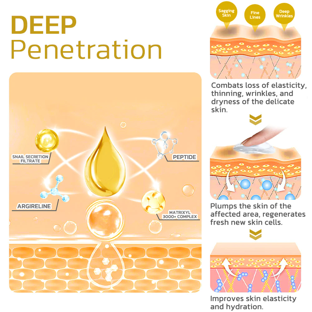 The flysmus™ Snailcollagen Lifting and Firming Cream is formulated to reduce and lift wrinkles on the skin. Its key ingredients, including snail secretion filtrate, Matrixyl 3000+ Complex, Argireline, and peptides, work together to promote collagen production, increase skin thickness, stimulate cell regeneration, and reduce the appearance of wrinkles and fine lines. When applied to the skin, it helps to replenish the skin’s collagen levels, which can help to reduce the appearance of fine lines and wrinkles. It also helps to improve skin hydration, making it look more plump and youthful.