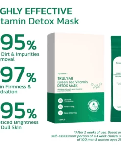 The flysmus™ TRULYMI Green Tea Vitamin Detox Mask is a rejuvenating skincare product that offers a refreshing and invigorating experience. Infused with the natural goodness of green tea and enriched with essential vitamins, this mask provides a delicate yet effective detoxification for the skin.