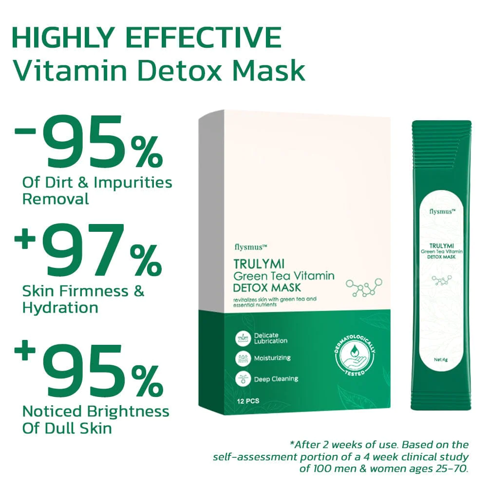 The flysmus™ TRULYMI Green Tea Vitamin Detox Mask is an advanced skincare solution formulated to effectively penetrate and dissolve dirt layer by layer, providing a thorough and revitalizing cleanse. Infused with the natural potency of green tea and fortified with essential vitamins, this mask works diligently to deeply penetrate the skin, targeting embedded impurities and pollutants.