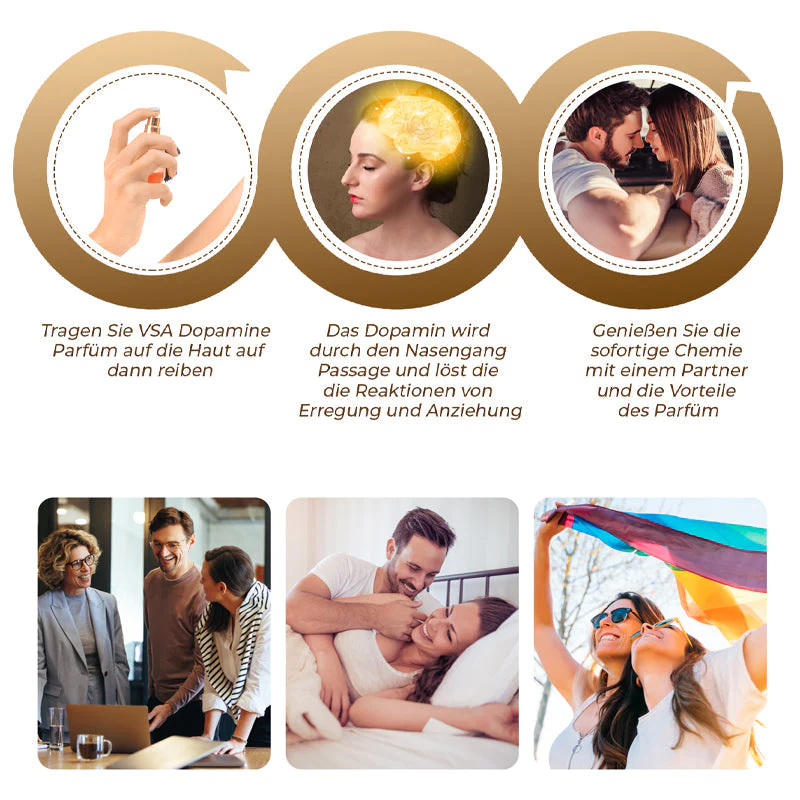 In ersten und neuen Beziehungen bewirkt die Verwendung von flysmus™ VSA Dopamin-Parfüm eine schnelle Freisetzung von Dopamin, die starke Gefühle von Euphorie und Vergnügen hervorruft. Man fühlt sich berauscht, erregt und möchte in dieser Zeit in der Nähe des Geliebten sein.
