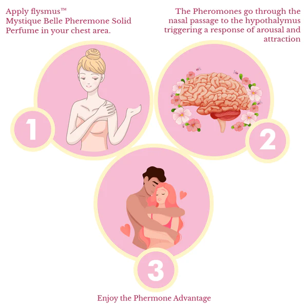 The flysmus™Mystique Belle Pheromone Solid Perfume is new fragrance. It is a sensory journey that unveils a delicate fusion of floral and fruity accords. Unleash your inner goddess with our captivating perfume, crafted to embody the perfect balance of feminine grace and an alluring magnetism that mesmerizes men. Leaving a trail of mesmerizing beauty wherever you go. Prepare to make heads turn and hearts skip a beat with each intoxicating whiff.