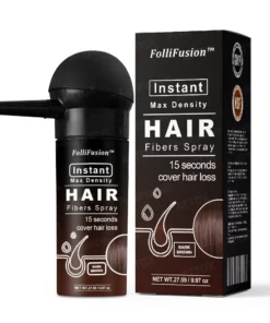 FolliFusion™ Instant Max Density Hair Fibers Spray is a safe and non-toxic solution that doesn’t clog pores and is easy to clean. It is designed to be windproof, sweatproof, and waterproof ensuring long-lasting results throughout the day. Suitable for all hair types and textures including straight, wavy, and curly, it provides a natural yet durable solution. You can confidently go about your day knowing your hair will stay thick and full for hours.